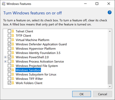 Enabling Windows Sandbox in Windows 10